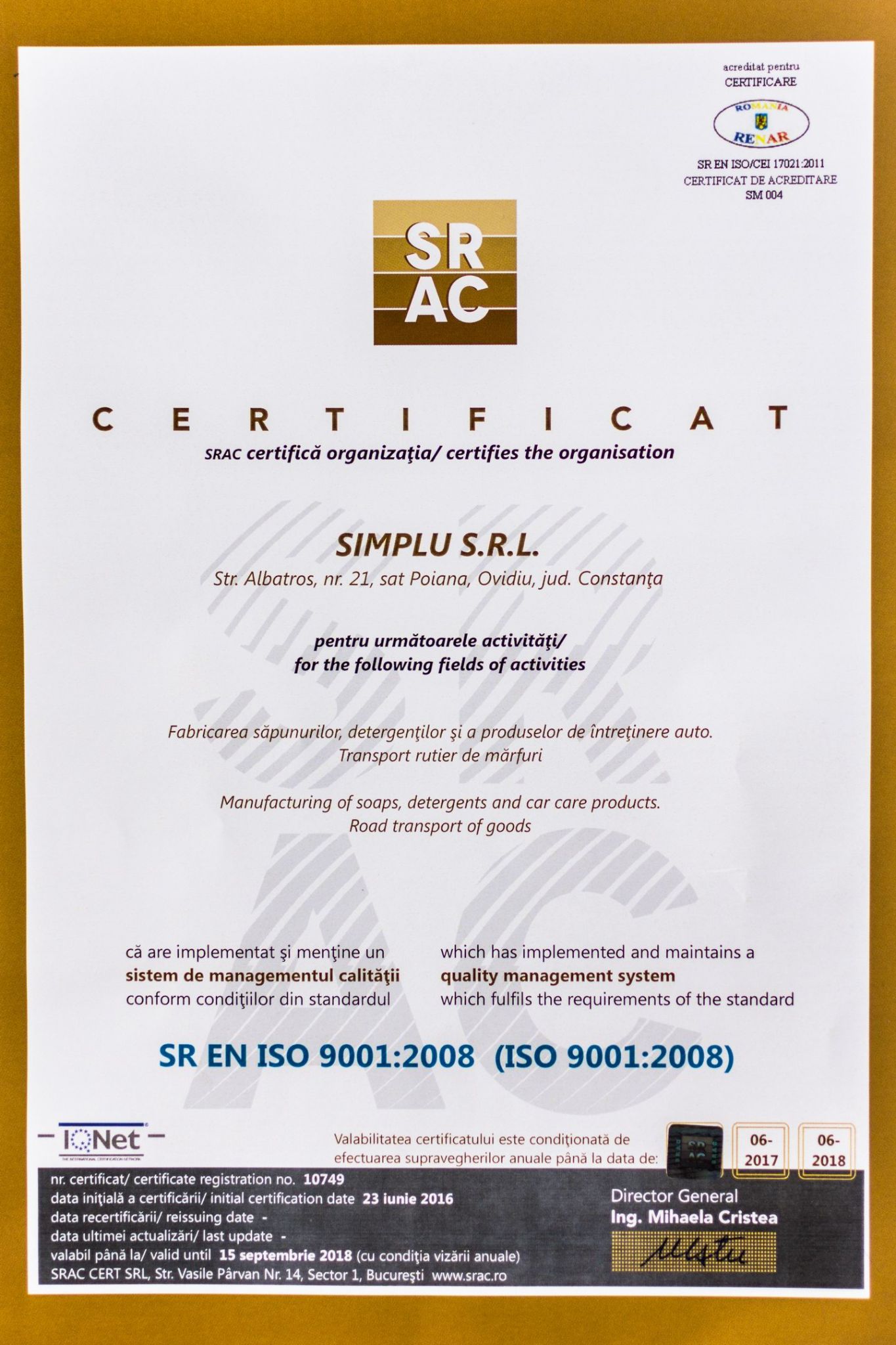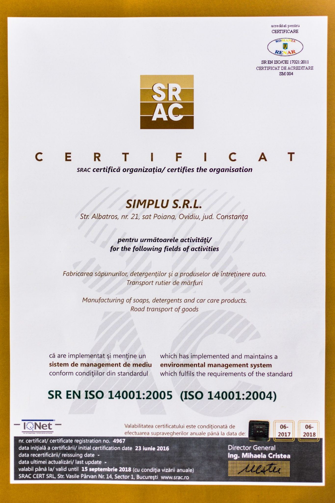Cu toate acestea, având încredere în experiența acumulată în toți anii de activitate, în devotamentul și implicarea echipei, precum și în recunoașterea rezultatelor de către clienții noștri într-o piață din ce în ce mai exigentă, compania SIMPLU și-a asumat responsabilitatea de a conduce acest business printr‑un proces continuu de îmbunătățire a calității serviciilor și a produselor, precum și prin implementarea unor instrumente practice de gestionare a responsabilităților de mediu.