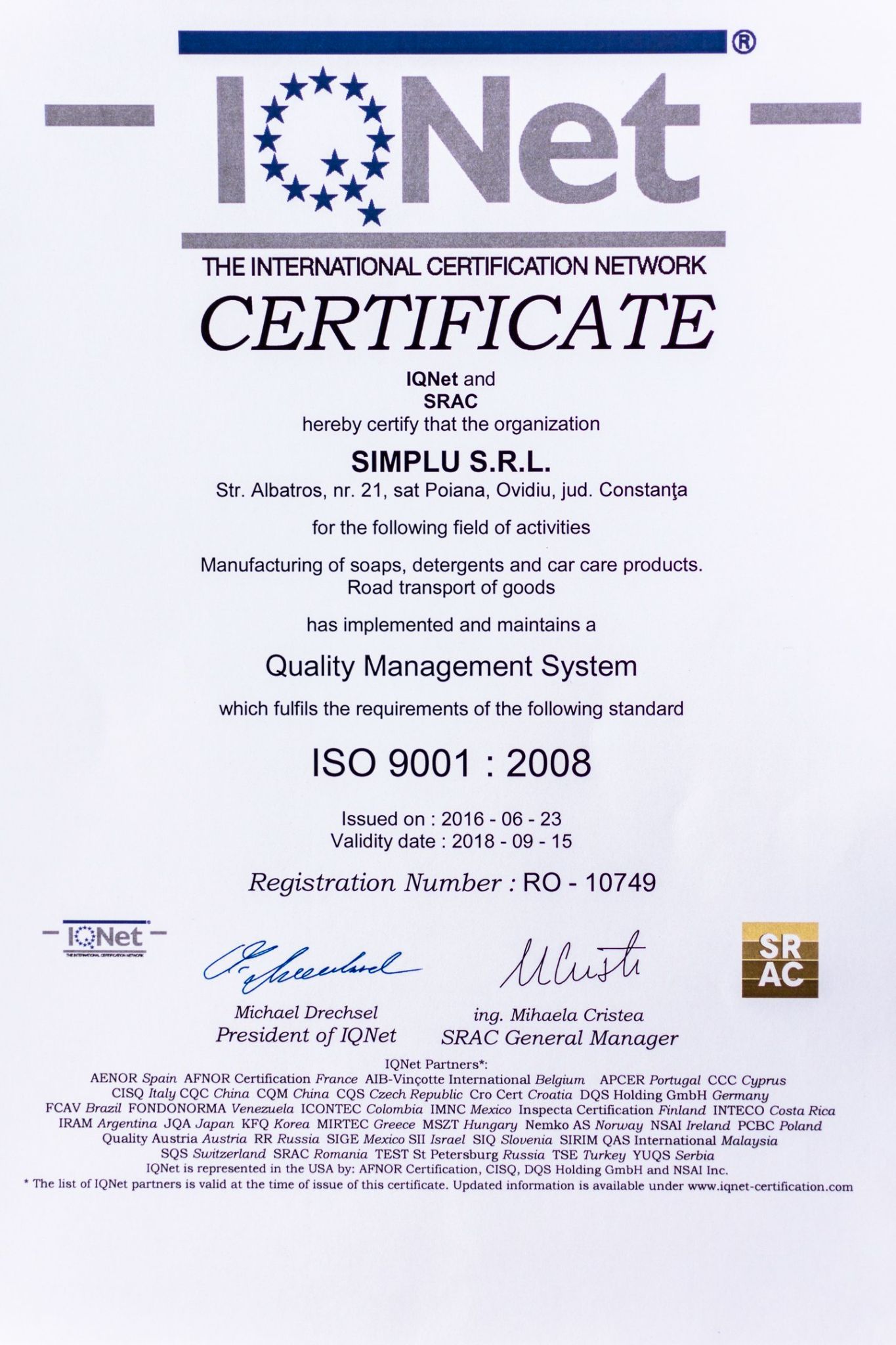 Certificările Sistemului de Management al Calității SR EN ISO 9001 și a Sistemului de Management al Mediului SR EN ISO 14001, ambele emise de IQNet si SRAC, ne-au ajutat să ne îmbunătățim performanțele organizației prin implementarea unei culturi organizaționale ce implică un ciclu continuu de autoevaluare, corecție și îmbunătățire a operațiunilor.